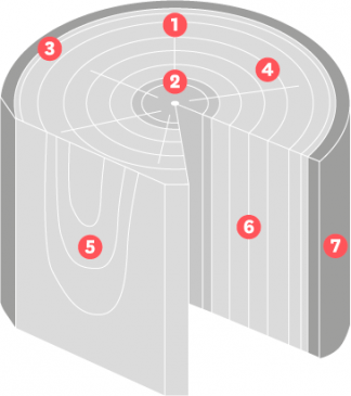 Unter Kernholz ist der meist deutlich dunklere innere Teil eines Baumstamms zu verstehen. Es handelt sich dabei um nicht mehr aktives Holz, dessen Struktur sehr wasserarm und vergleichsweise fest ist.