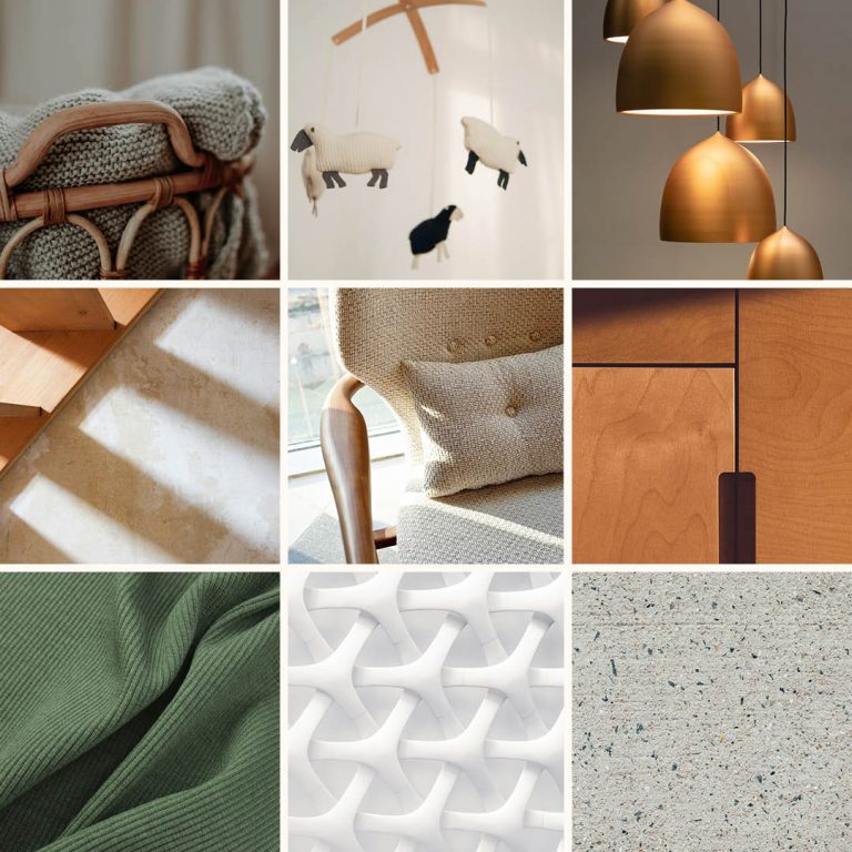 Natürliche, haptische Oberflächen sind ein Muss. Heller Naturstein, kräftiges Holz, geflochtener Bast, weiche Wolle und farbiges Steingut in Kombination mit mattem Weiß ergeben einen zeitgemäßen Stil.