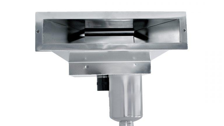 Bei dieser Variante ist die Überlaufrinne ein fester Bestandteil des Beckens. Über eine schmale, abgeschrägte Kante fließt das Wasser in die Rinne. Oft findet sich diese Bauart bei Edelstahlbecken.